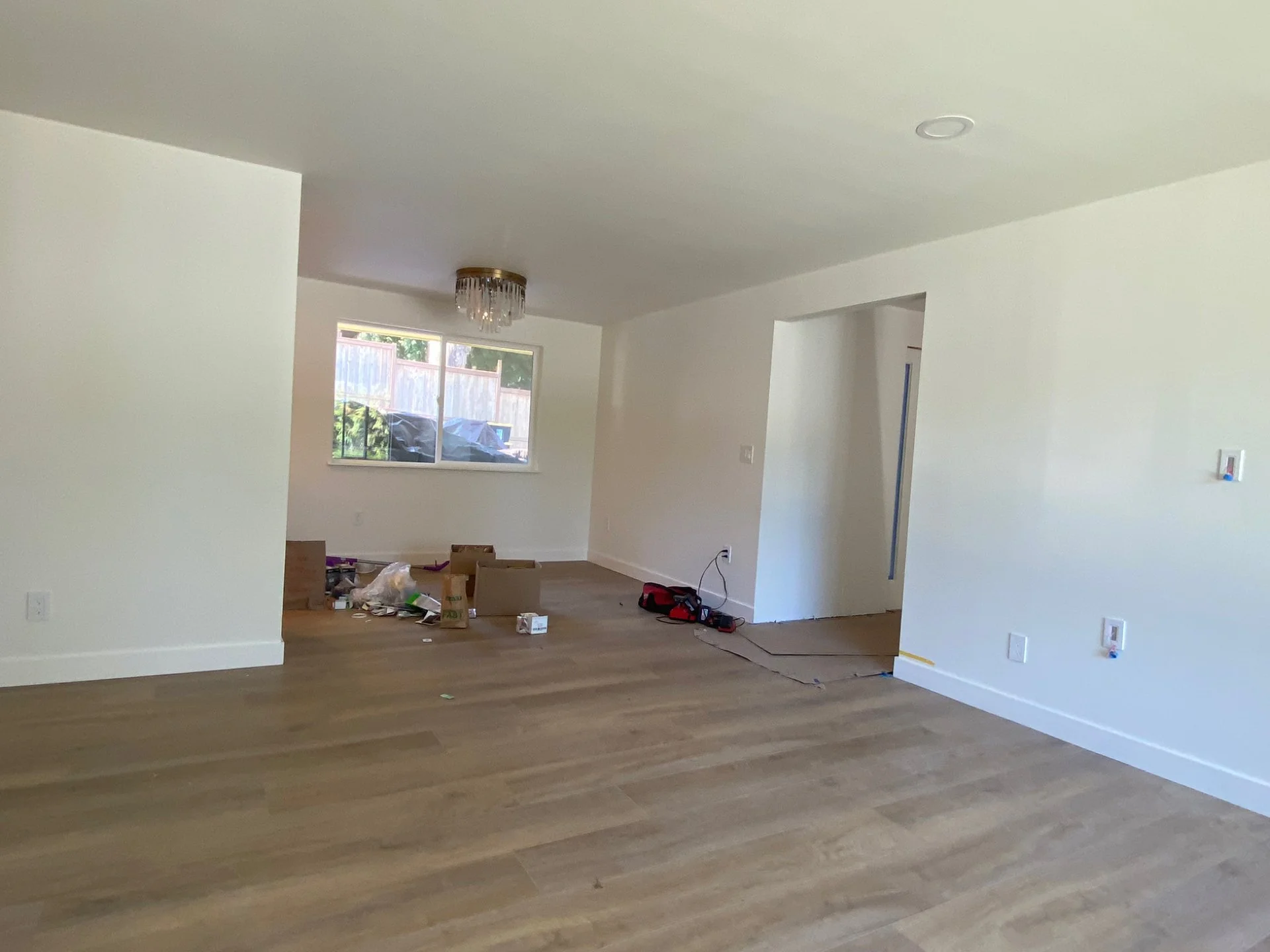 This Redmond home underwent a complete interior remodel, transforming outdated finishes and a choppy floor plan into a clean, open, and modern living space. From removing popcorn ceilings and demolishing interior walls to installing new floors, Level 5 drywall, and fresh paint, our team handled every step of the renovation with precision and care.